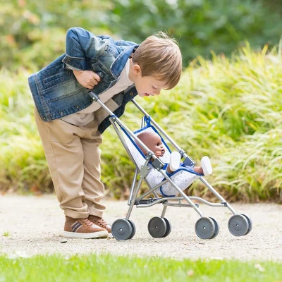 Baby finished eating, now it’s time for a walk! This doll nursery set and coordinating stroller add realism to pretend and dramatic play with dolls! Perfect for dolls up to 12″ tall, the accessory set gives your toddler everything they need to nurture their own baby. The stroller design is inspired by those for real babies. It is foldable, lightweight, and easy to store when it is not being used. It also features 2 protective closures to protect fingers from getting pinched in the folding process. It is largely sized, easily able to hold dolls measuring 14″ to 17″ long. Expanded stroller measures 17.7″L x 11″W x 24.8″H. The nursery set includes realistic pieces used to feed and diaper baby.