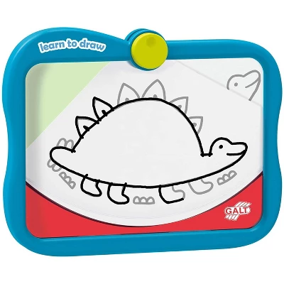 Encourage your young budding artists to branch out and create amazing pieces of art on the go! This travel art set by Galt is perfect for learning while traveling with the ease of set up and clean up. Galt creates toys that help young children learn many different subjects, not just art. Grab the dry erase marker and set the first slide under the drawing board. Trace until that portion is finished and move onto the next! It is as easy as 1, 2, 3. Your budding artists will love learning how to draw cute animals and furry things on the go with ease of storage and clean up. Galt makes toys that will help your children gain fundamental skills in many subjects that helps them as they mature and grow. Galt turns playtime into learning time with their simple, yet effective toys. When Galt started as a company back in 1836, they began selling school books to local schools and branched off from there. Every Galt toy teaches kids something in the plethora of subjects.