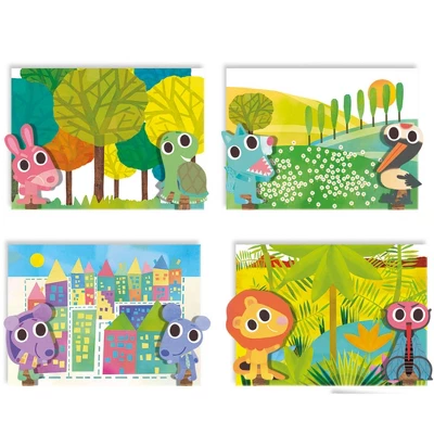 Headu Theatre Acting School | Once upon a time there was a little mouse, but also a frog, a hare and a bull… Discover your favorite traditional fairy tales and bring them to life, imitating the characters and creating new sets each time! Bring characters to life with your acting skills. great for pretend play. Includes Cardboard theatre, 11 double-face scenario, 12 double-face characters, 12 bases to animate characters, and Teaching guide.