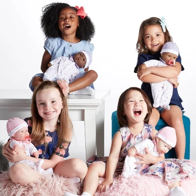 “It Looks So Real!” These four words are exactly the first things a child exclaims once they see their new La Baby Doll! 16-inch La Baby in the pink outfit has a unique cheerful smile that brightens every child’s bedroom. The possibilities for pretend playtime fun are endless because holding and carrying our 16-inch La Baby feels similar to holding a baby. It’s easy to spark a child’s imagination with a La Baby, thanks to the doll’s life-like brown eyes, adorably plump cheeks, and oh-so-cute button nose!