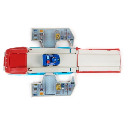 Get ready to launch and race to your next big rescue mission with the Pup Squad Patroller and a collectible, Mighty Pups Chase, Pup Squad Racer just like you see in PAW Patrol: The Mighty Movie! Measuring 10 inches long, and 5 inches tall, this pint-sized vehicle playset features an exciting transformation from a PAW Patroller toy truck, into an awesome mobile command center, complete with vehicle launch ramp and toy storage space, for additional Pup Squad race cars (each sold separately)! Tilt the cab roof forward to place the Chase race car into the driver’s seat, before pushing the patroller forward on six real working wheels. Then, when it’s time for a high speed rescue, remove Chase from the Cab, close the roof, the put Chase on top of the cab to engage the transformation, which pops the trailers roof open to convert it into a launch ramp, and lowers the side walls to reveal a staging area and additional vehicle storage space! When playtime is over, fold the ramp and raise the walls to return into truck-mode, so you can pack up your toy car in the patroller, then take them with you anywhere, for exciting action on the go! With PAW Patrol toys, a kid can explore his or her imagination and develop their motor skills through pretend play while reliving their favorite scenes from the movie! For even more fun and exciting PAW Patrol series-inspired missions, expand your world of PAW Patrol by collecting all the Pup Squad Racers and all the PAW Patrol movie toys, like the awesome Aircraft Carrier HQ and the special edition PAW Patrol toys for girls and boys, like the Mighty Pups, Aqua Pups and Big Truck Pups toy figures and playsets (each sold separately)! Enjoy endless PAWsome adventures with your favorite hero pups with the PAW Patrol: The Mighty Movie, Pup Squad Patroller! Includes: 1 Pup Squad Patroller, 1 Pup Squad Racer