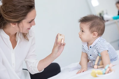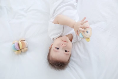 - Develops fine motor skills through play as they grasp and pinch the arms as they slide from one side to another.