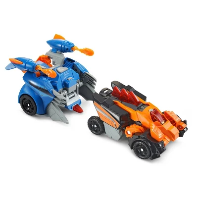 - Transform playtime adventures with Switch & Go®; easily combine the Spinosaurus and Pterodactyl into a fireball-launching speedster mega car